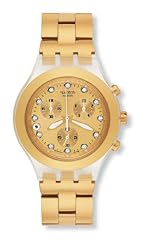 Designed for the fashionable, urban person, the swatch men's full blooded gold lookout is a remarkable chronograph timepiece. The gold, stainless steel wristband, accompanying with the handsome dial of the selfsame color, is distinct to desk out on your wrist and will be an instant conversation portiion. The diaphanous box proposes a unique, modern caress while the dial features a chronograph and white crystal hour indexes for a clean, minimal descry. A calendar displaying the day of the month is located discreetly in the middle of eight and nine o'clock. The scratch-resistant dial window safes from daily wear and tear. The adjustable wristband features a fold-over enclosure. The men's full blooded gold lookout is powered by swiss-made eta quartz movement and is water unyielding up to 100 feet (30 meters).Always pay through Amazon.com Shopping Cart or 1-Click.Your purchase will be protected by the A-to-Z Safe Buying Guarantee. Never respond to requests to send funds via wire transfer. Learn more about Safe Online Shopping.Amazon.com Details [Read more Swatch Men's FULL BLOODED Watch SVCK4032G]